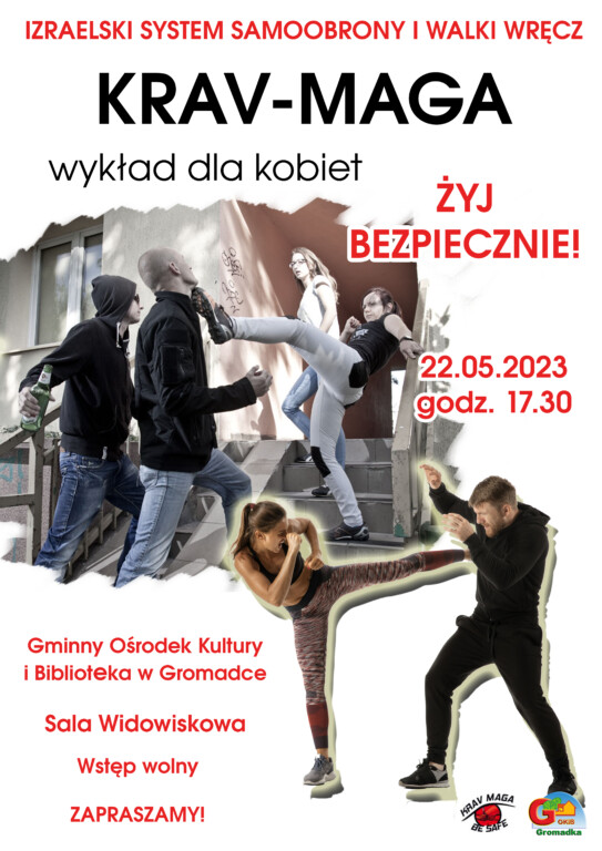DROGIE PANIE MIŁO NA POINFORMOWAĆ ŻE JUŻ 22 MAJA wraz Uniwersytetem Trzeciego Wieku w Gromadce organizujemy DARMOWY TRENING SAMOOBRONY I WALKI WRĘCZ KRAV MAGA DLA KOBIET